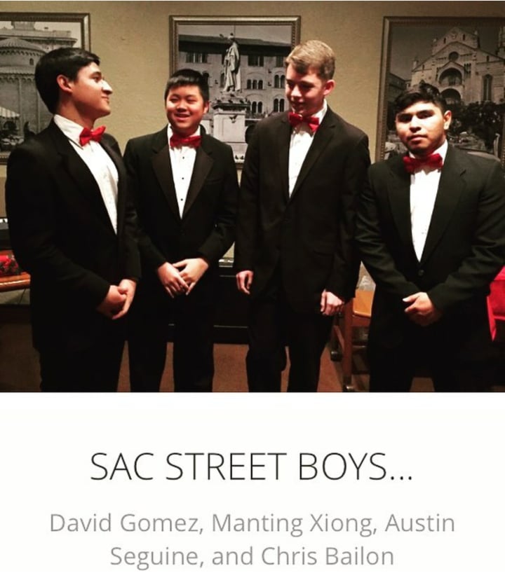I knew I wanted leadership things to be a part of my life so I continued to seek it out whenever I had the time. So, in my junior year of high school, I had the privilege and opportunity to be part of both my high school’s student government course and also be in Sac Street Boys (SSB) which is a four-men quartet group in my Acapella course. I, unfortunately, do not have any photos of me being in student government. To be in Sac Street Boys, male Acapella students must first be part of the Acapella class and audition then at the beginning of the year, male Acapella students can audition to be in SSB. However, there are only four spots available and those are permanent for the duration of the academic year. I’m just blessed to have been part of a hard-working and fun team that was very cohesive in teamwork and vibes.