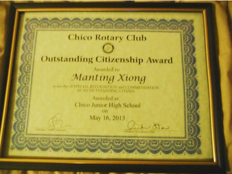 When I was called up for Chico Rotary Club’s Outstanding Citizenship Award, I was so shocked. I couldn’t believe my name was being called. I had no idea I was even considered for this award. The only other person that received this award was a female classmate in my Leadership class. This was the validation I needed at the end of the year for me to truly know that my actions and efforts in my community were seen, heard, and appreciated.